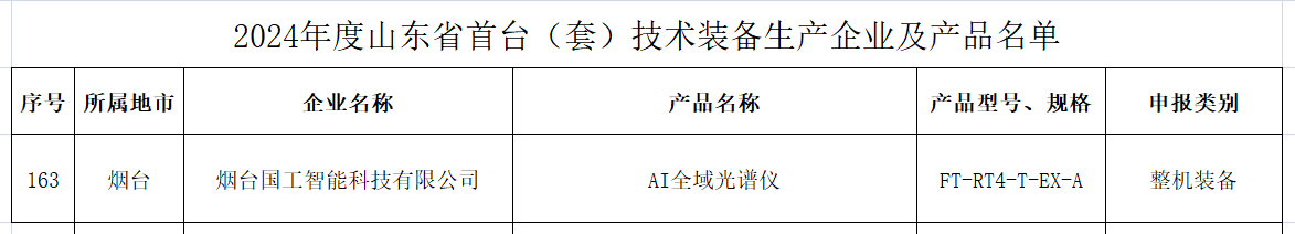 2024年12月16日,自主研發的AI全域光譜儀入選《2024年度山東省首臺(套)技術裝備產品名單》,彰顯出國工智能在技術研發及產品創新的強勁實力,更加堅定了國工智能持續實施AI能力硬件化戰略。