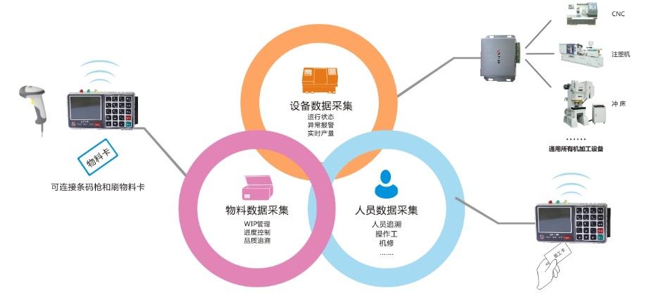 數據采集是MES制造執行系統進行數據統計和生產管理的基礎。MES根據不同的生產情況、投料、設備、人員、工藝所產生的不同類型的數據要采用不同的數據采集方式。
