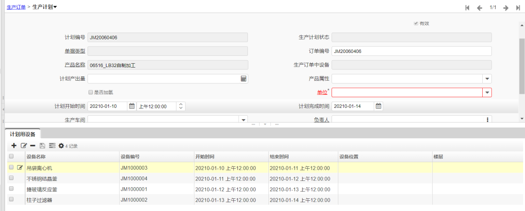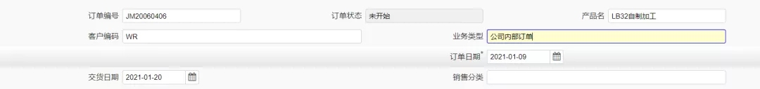創(chuàng)建產(chǎn)品名稱為LB32自制加工的化工產(chǎn)品生產(chǎn)訂單,其中訂單日期為2021-01-09,交貨日期為2021-01-20。如下圖所示: