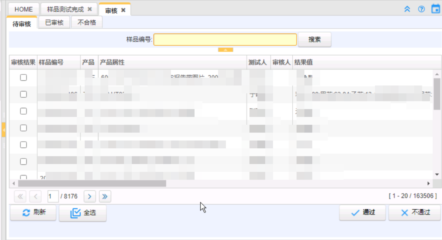 系統上線前,審核人根據樣品逐一找出檢驗單進行審核,耗費時間較多;系統上線后,審核人委托單號、樣品信息篩選快速找到檢驗項目的結果進行審核,不合格的檢驗項目可以退回,檢驗完成后再次審核,提高工作效率。