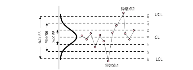 一般而言,隨機因素對產(chǎn)品質(zhì)量影響是微弱的,也是任何生產(chǎn)過程所固有的,而特殊原因容易導致質(zhì)量特征發(fā)生劇烈的變化,導致異常值的發(fā)生。當一個過程僅僅受隨機因素影響的時候,過程的質(zhì)量特征輸出一般都符合正態(tài)分布,也就是說,特征值落在 3 的范圍內(nèi)的概率將達到99.73%,而落在此區(qū)間外的概率僅有0.27%,被認為是異常現(xiàn)象,休哈特博士正是根據(jù)正態(tài)分布的這一特性構造了休哈特控制圖,也稱之為常規(guī)控制圖。