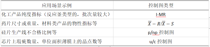 表1:各種控制圖的應用場景介紹
