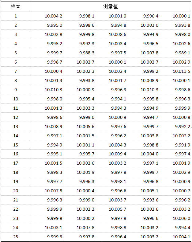 表2:來自油漆裝料過程的子組容量為5的25個樣本