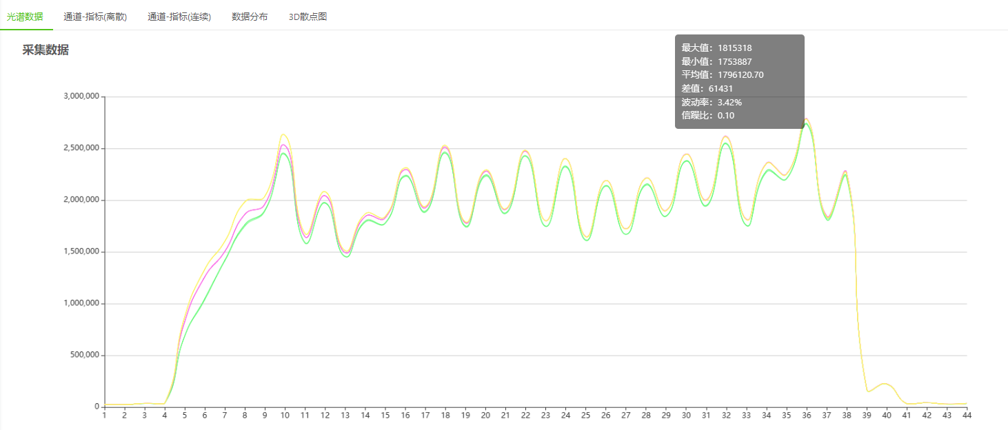 以在線智能光譜儀采集數(shù)據(jù)為前提,數(shù)據(jù)大腦平臺(tái)為依托,“在線智能光譜檢測(cè)系統(tǒng)”通過當(dāng)前主流AI人工智能技術(shù)在線將采集到的大量數(shù)據(jù)機(jī)器學(xué)習(xí)、訓(xùn)練模型,模型對(duì)生產(chǎn)材料進(jìn)行在線檢測(cè),檢測(cè)結(jié)果可以輔助生產(chǎn)過程的決策,在品質(zhì)監(jiān)控以及原料投放方面起到了重要作用。光譜傳感器的光源波段覆蓋紫外到近紅外區(qū)域。