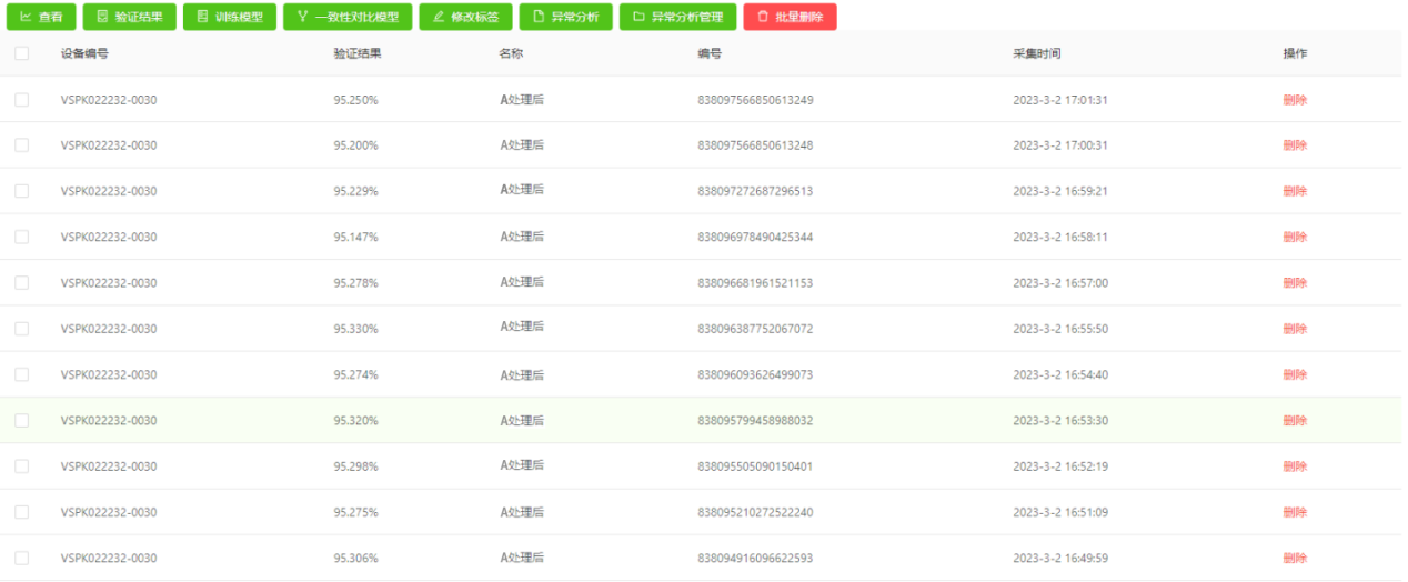 驗(yàn)證方案:將A處理前溶液數(shù)據(jù)訓(xùn)練一致性模型,取A處理前后溶液數(shù)據(jù)進(jìn)行檢測(cè)驗(yàn)證。