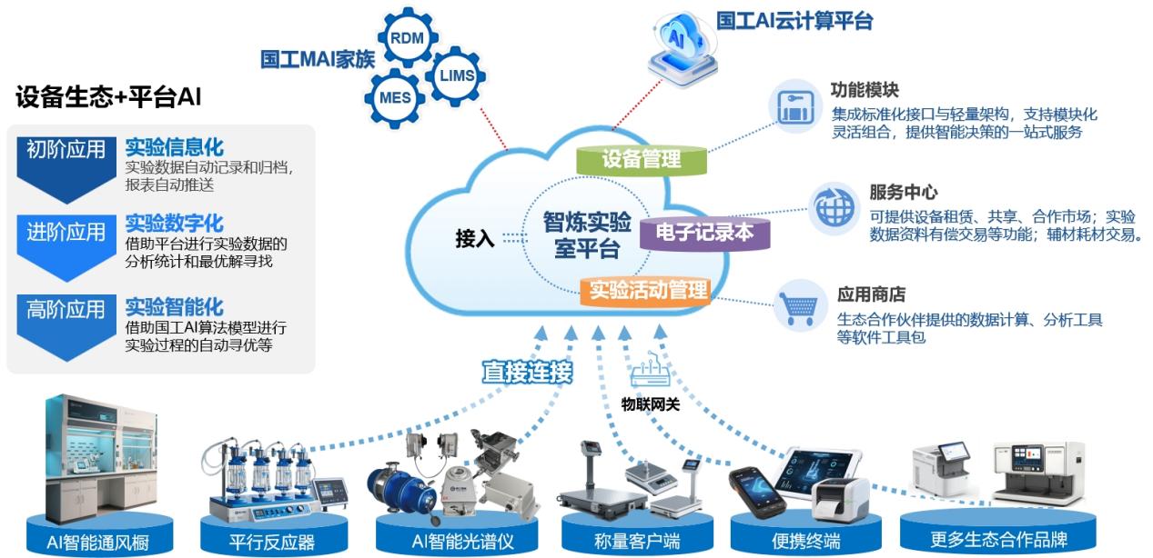 3. 智煉信息化平臺(國工智能大腦):包含PC端與移動端的數字化管理平臺,實現對設備的集中監控、數據可視化、智能分析和遠程控制,讓研究人員隨時隨地掌控研發全過程。
