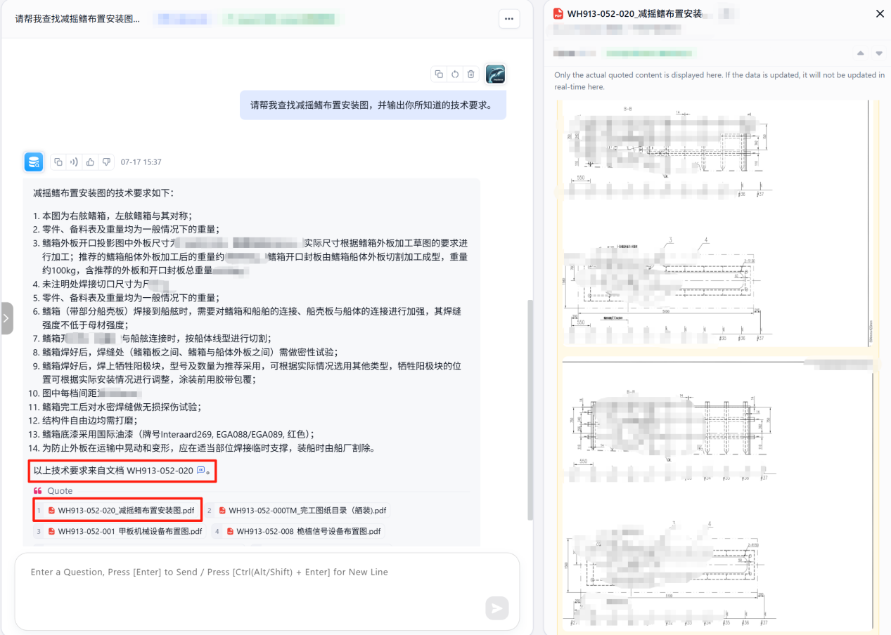 構建面向船舶運營與管理的智能化知識問答平臺,深度融合《國際安全管理規則》(ISM規則)體系執行要求,集成機械設備圖紙說明書查詢、故障診斷與處置措施指導、海洋裝備技術信息、船舶AIS動態數據解析等核心功能,打造覆蓋船舶全生命周期的知識服務體系。